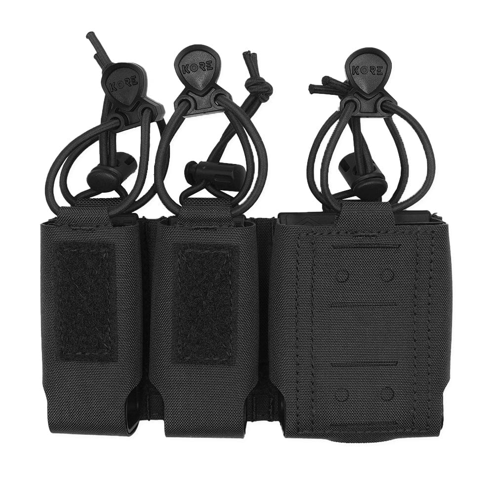פונדה משולשת למחסניות מבית KORE מספקת פתרון אמין ועמיד לנשיאת מחסניות רובה ואקדח בתנאי שטח קשים. הפונדה מצוידת במערכת אחיזה כפולה, חיזוק מבני Bar-Tack ותכנון Skeletonized לניקוז מים ולכלוך, מה שמבטיח יציבות מקסימלית וקלות שליפה בזמן פעילות אינטנסיבית.